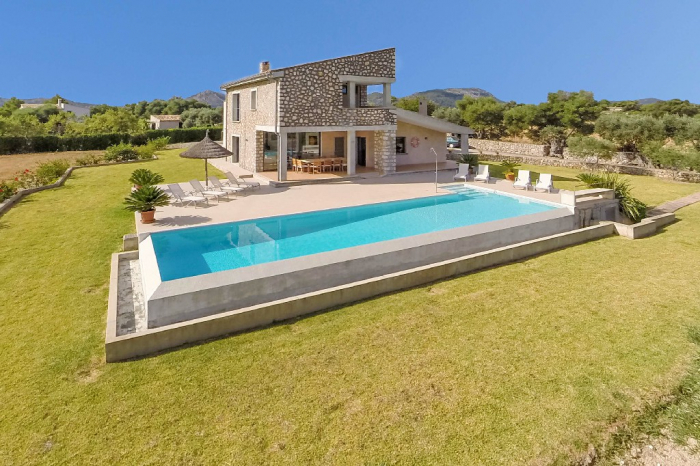 Modern and elegant, La Vinya Gran is a spectacular holiday home with private pool and perfectly located just 5 minutes drive from the old town of Pollensa and conveniently close to the sandy beaches of Puerto Pollensa or Cala San Vicente. With five bedrooms, large outdoor areas, a stunning contemporary design and panoramic views over the Tramuntana mountains and Pollensa Bay, this villa will impress.