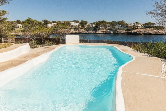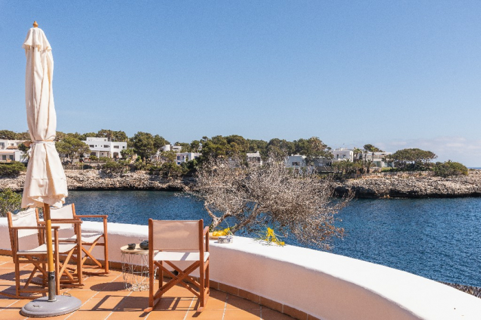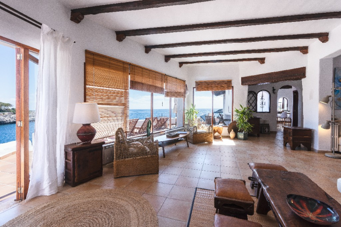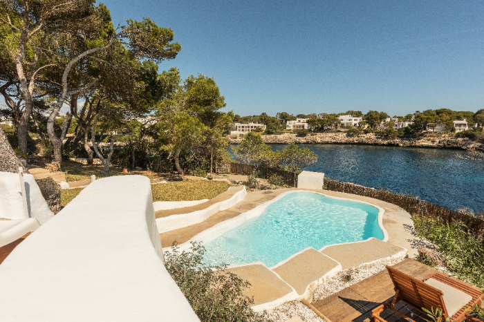Lorenzo. This ibiza style design villa for holidays standing in a very privileged location on the headland between the coves of Cala Gran and Cala D'Or in a quiet residential area with gorgeous views on the open sea and the "Forti"