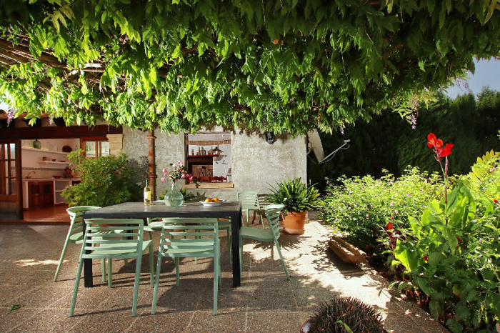 It is a rustic style house and consists of two floors, but only the ground floor is available to rent. A perfect family retreat, but close to many services.
