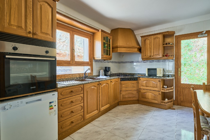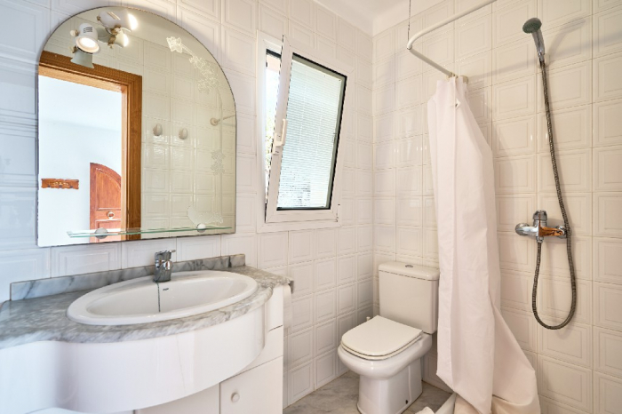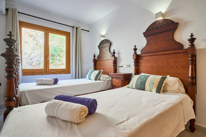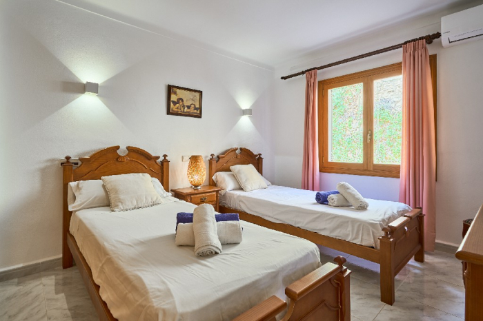 Puig de sa Figuera is a two-storey country house. From the patio beautiful two flights of stone steps lead to the house. On this floor there is the living room and the dining room which is very spacious. Both have access to a balcony/terrace with panoramic views of the surroundings with the coastline in the distance. The kitchen is next to the dining room. From the living room there are two steps that lead up to two twin bedrooms and to a bathroom. Next to the hall there is a shower-room.