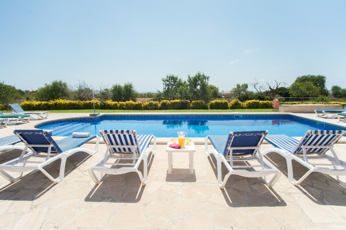 By the pool there are two more spacious and bright twin bedrooms each with en-suite shower-rooms. Spacious sun terrace with sun loungers and large pool overlooking the lawned garden and the coast at the far end. Close to the pool there is a metal pergola covered with trap to protect from the sun on the hottest days.