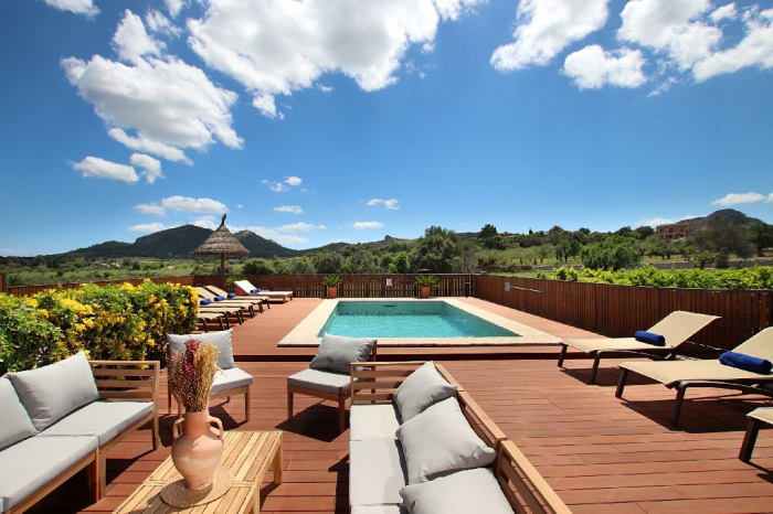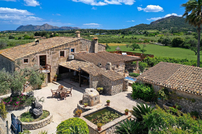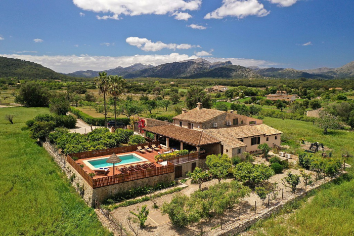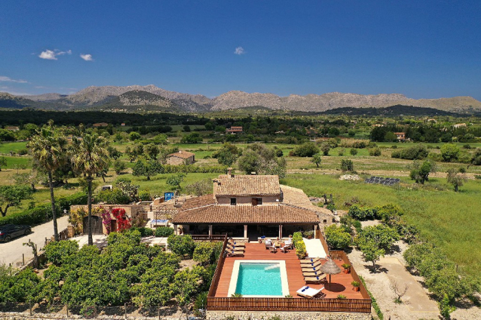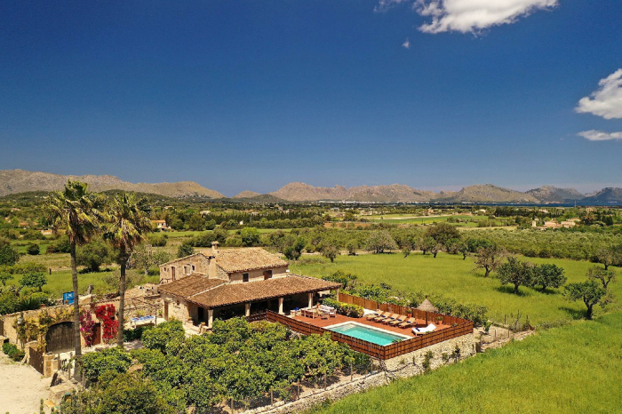 Can Sou se encuentra en el pintoresco paisaje entre Pollensa y Alcudia, ofreciendo impresionantes vistas panorámicas, a un lado las montañas y al otro la bahía.