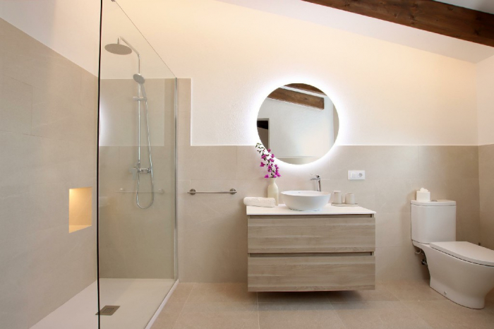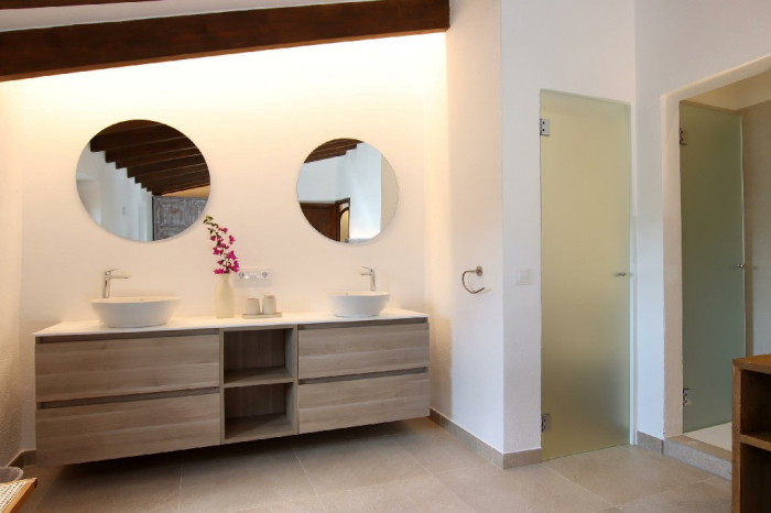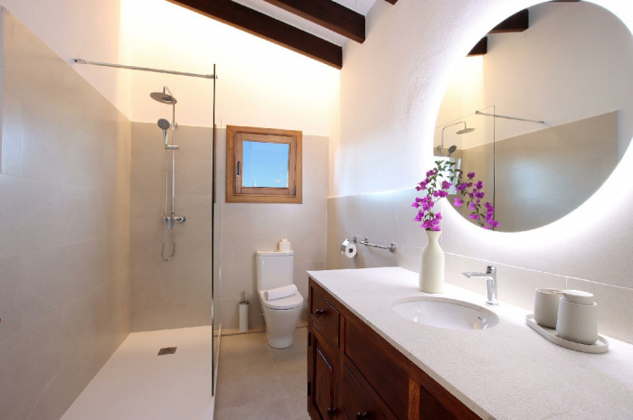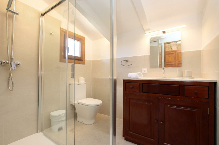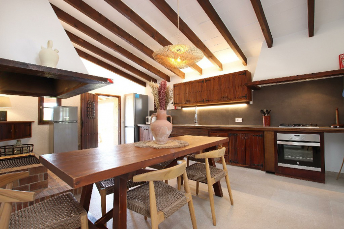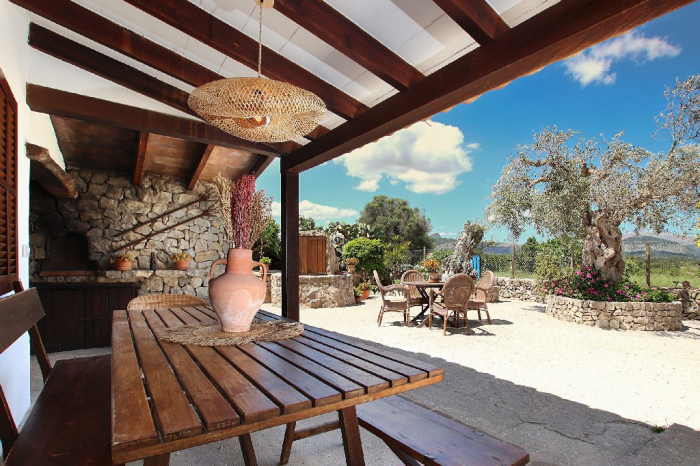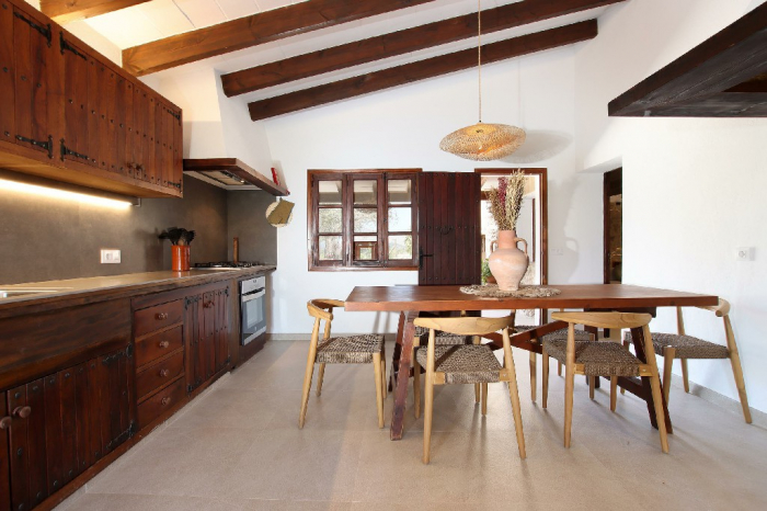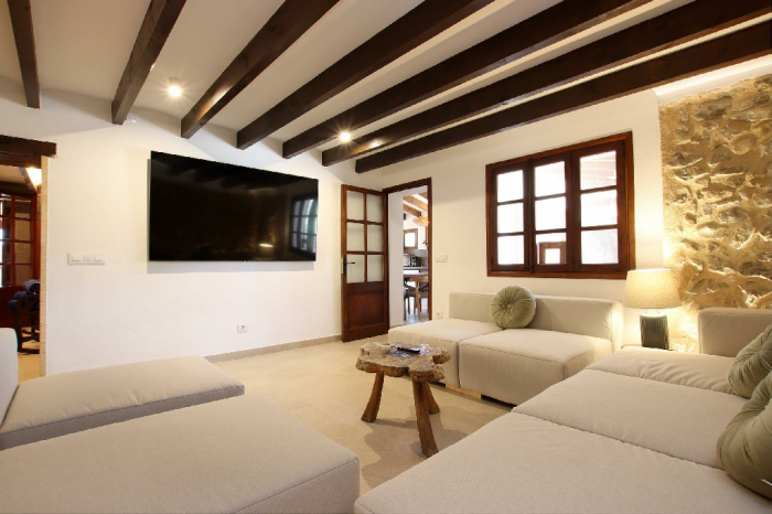 Un camino privado conduce a la propiedad y termina en un amplio aparcamiento para 3 coches. Toda la villa ha sido restaurada con mucho gusto, preservando su encanto tradicional mallorquín.