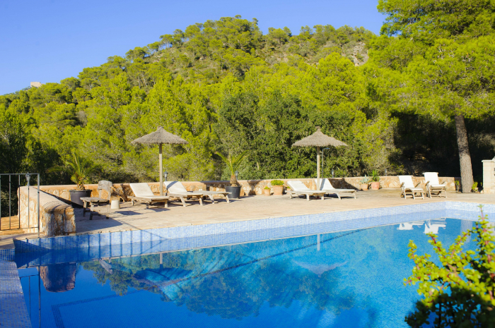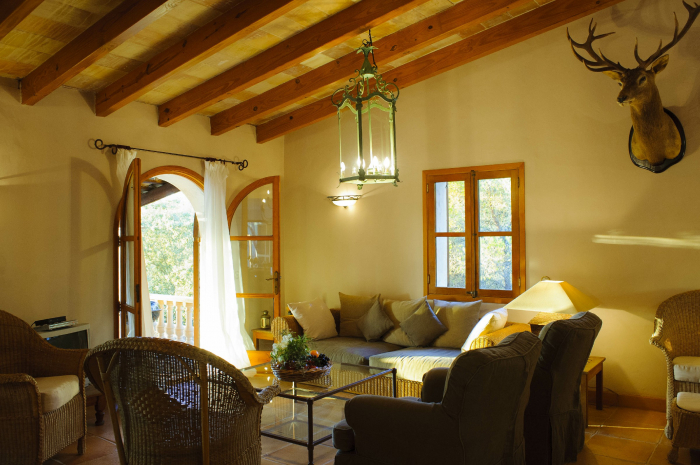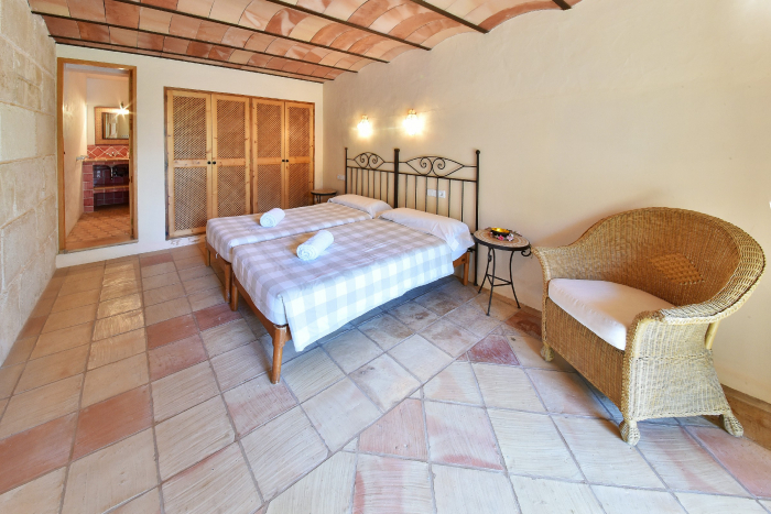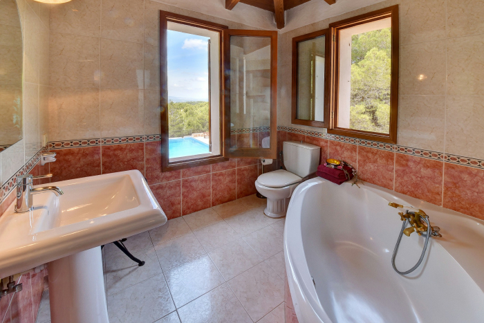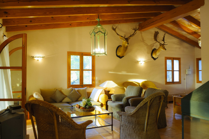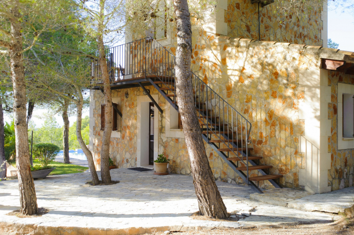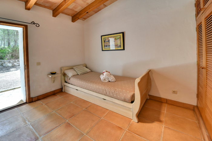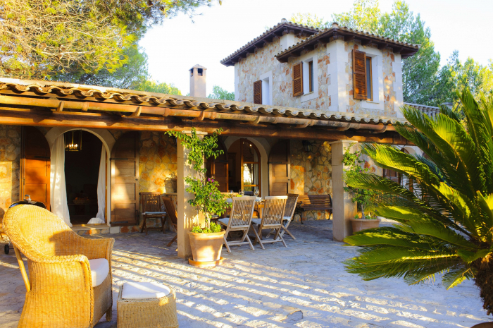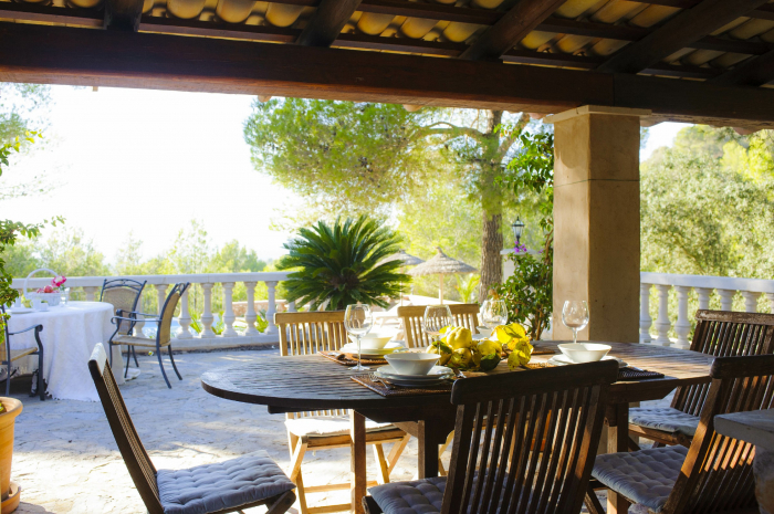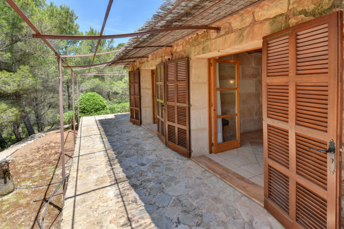 Country house for 9 people to rent set in the middle of nature. It enjoys a privileged location on the mountainside in the beautiful area called Binifarda 4 km away from Felanitx, Mallorca. The house is surrounded by pine trees and the only sound you can hear is the chirping of birds or the whispering of the breeze through the pines. The ideal place to enjoy a deep feeling of peace and tranquility.