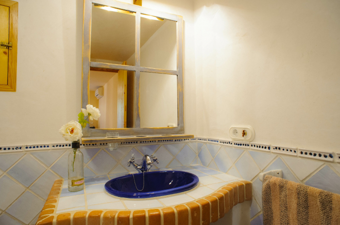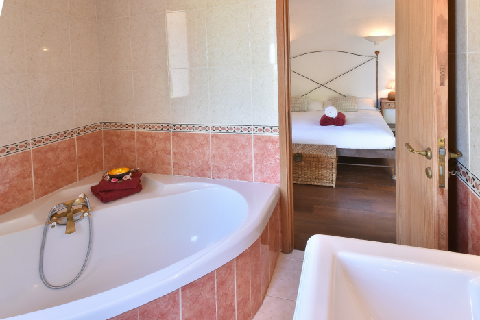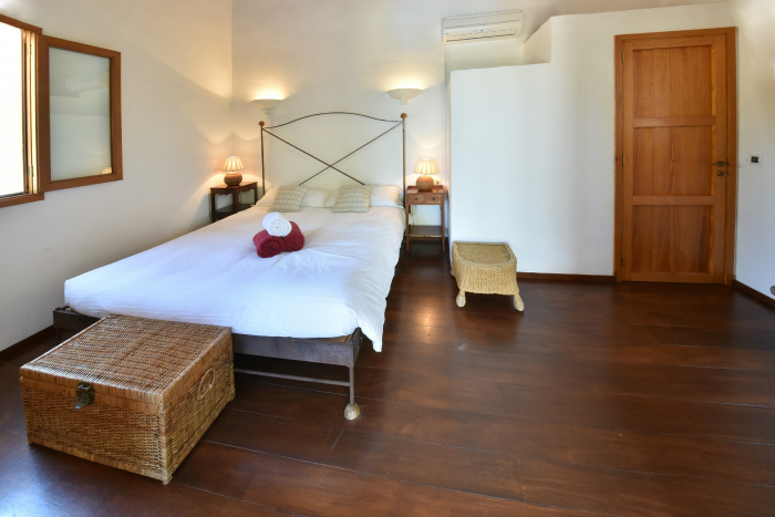 From this floor, through a narrow wooden stairs, there is access to a double bedroom located on an upper floor. It has a double bed and an en-suite bathroom with a big corner bath. This bedroom can also be accessed from the exterior.