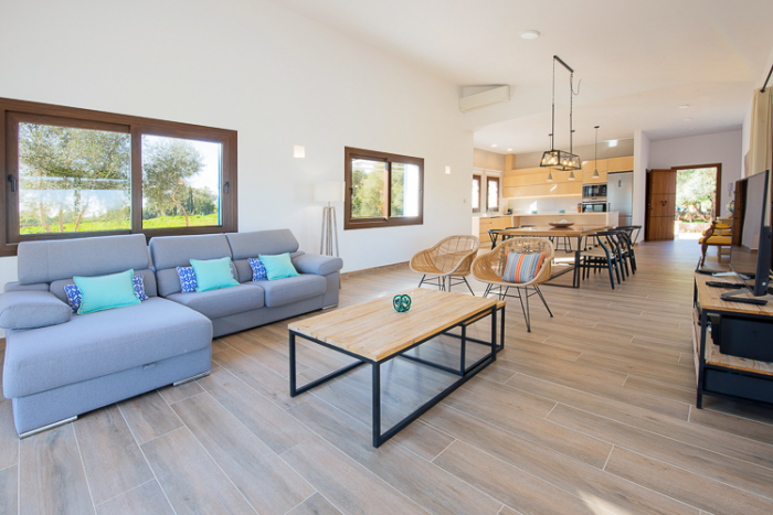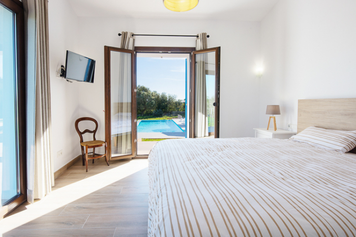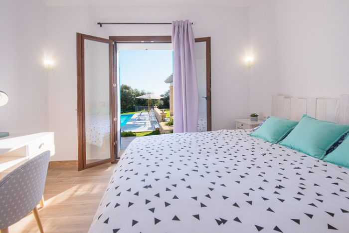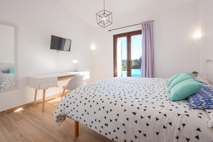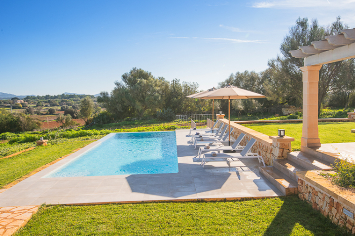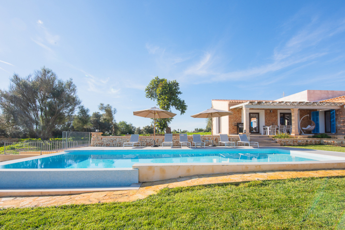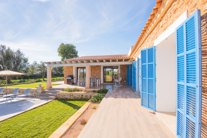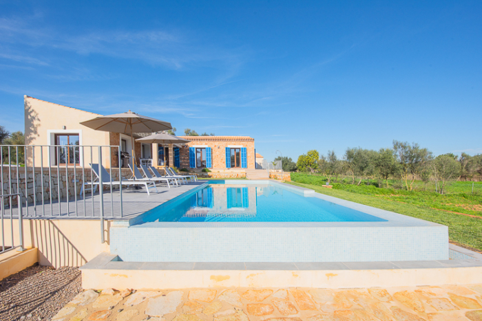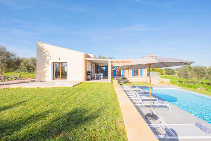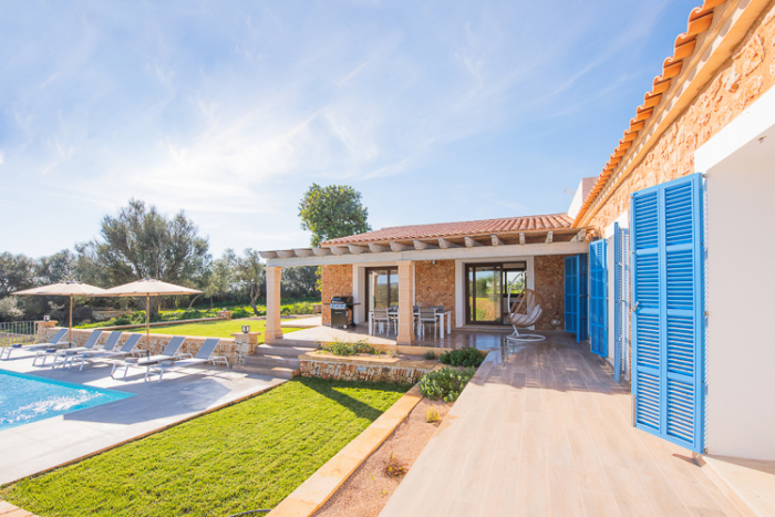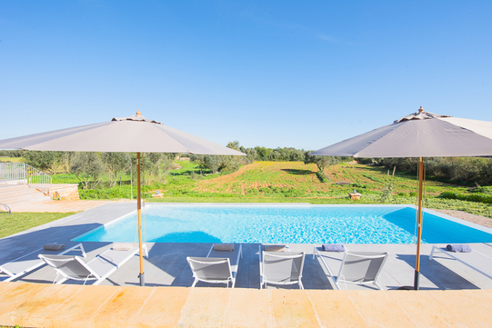 Charming new construction country house with a contemporary fresh style for 6 people, with private pool that enjoys open views to the surroundings, to rent in a quiet rural area 6 km. away from Felanitx, Mallorca.