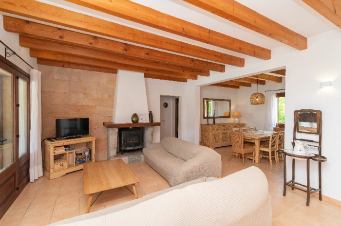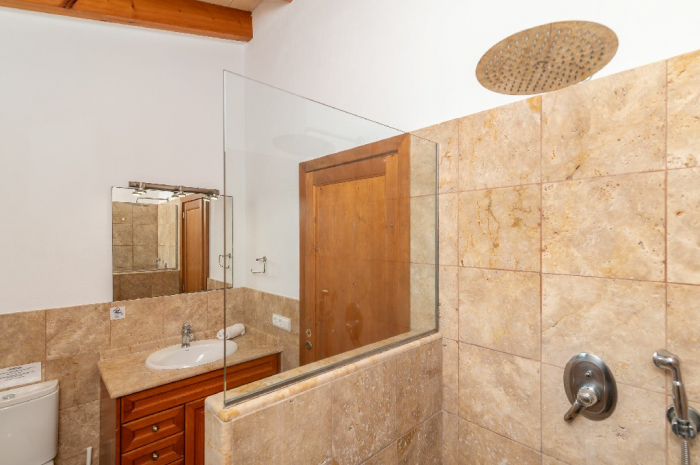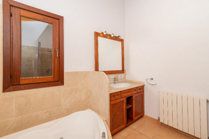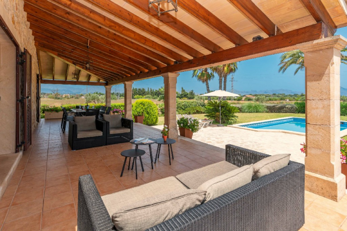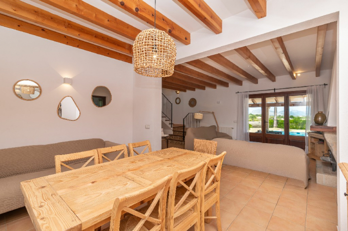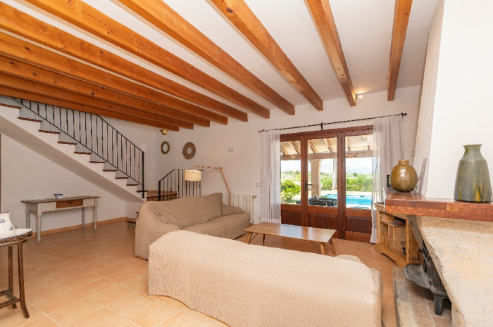 On the upper floor there is an attractive covered terrace with sofas and ping-pong table, providing unobstructed views over the Mallorcan countryside.
