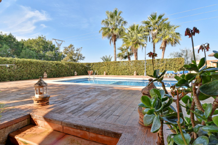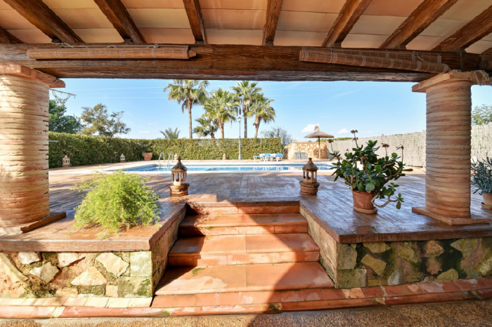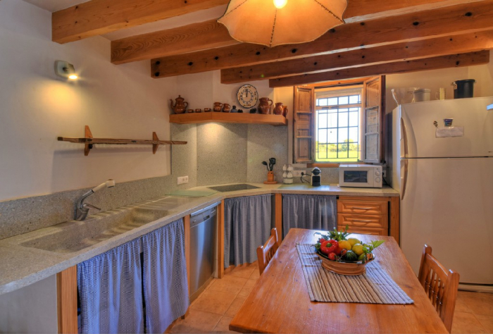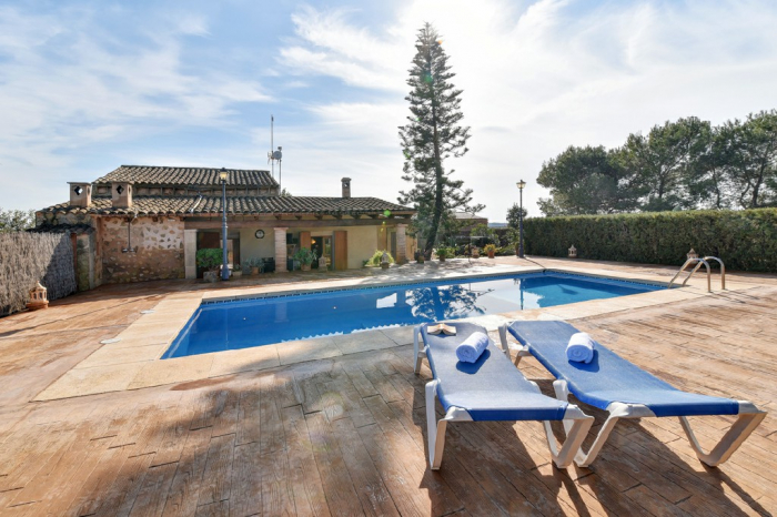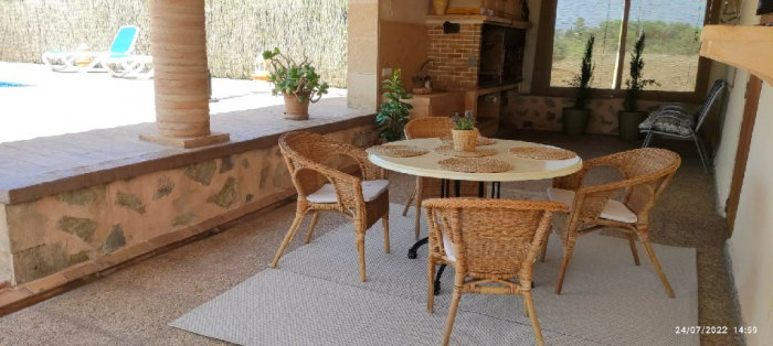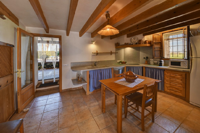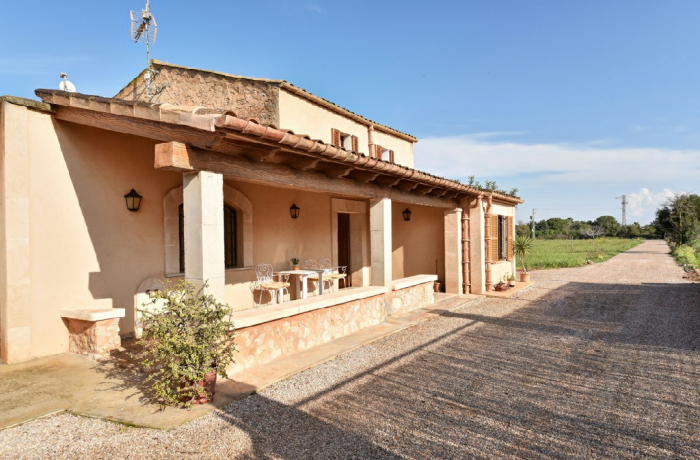 Charming three bedroom country house for 5 people for rent with private pool in Majorca, in a rural area in the south of the island, only 4,5 km. to the well known and spectacular sandy beach Ses Covetes - Es Trenc with clear turquoise water. The house that mixes perfectly the rustic and contemporary style, has a large pool where you can enjoy the summer time.