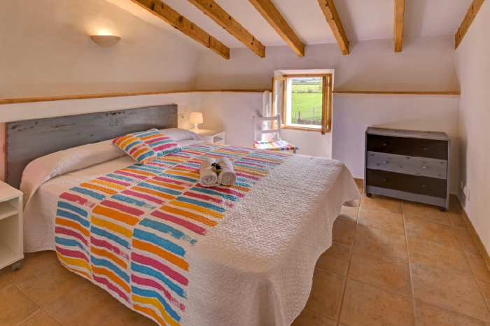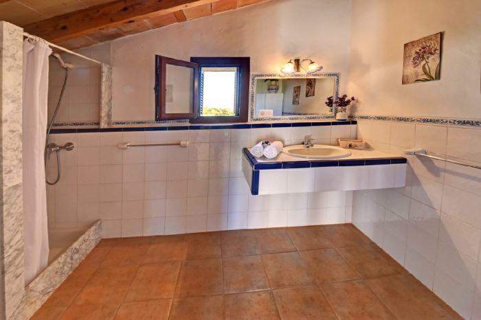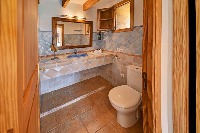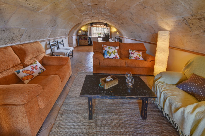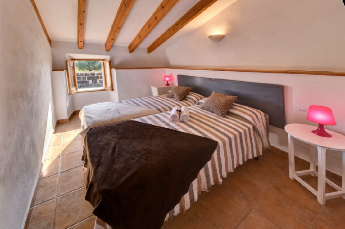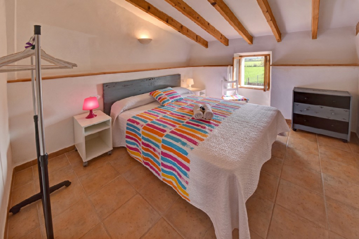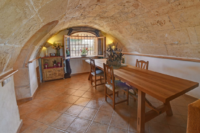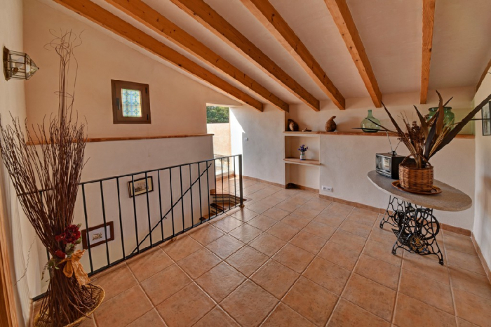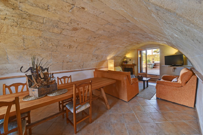Two-storey country house. On the ground floor is the living dining room with a beautiful voulted roof, that has access to the covered terrace and pool. The open kitchen has also access to the covered terrace and bbq area. The ground floor has a do bedroom with single bed en-suite shower room. The upper floor has a double and a twin bedroom. These bedrooms share a separate shower room.