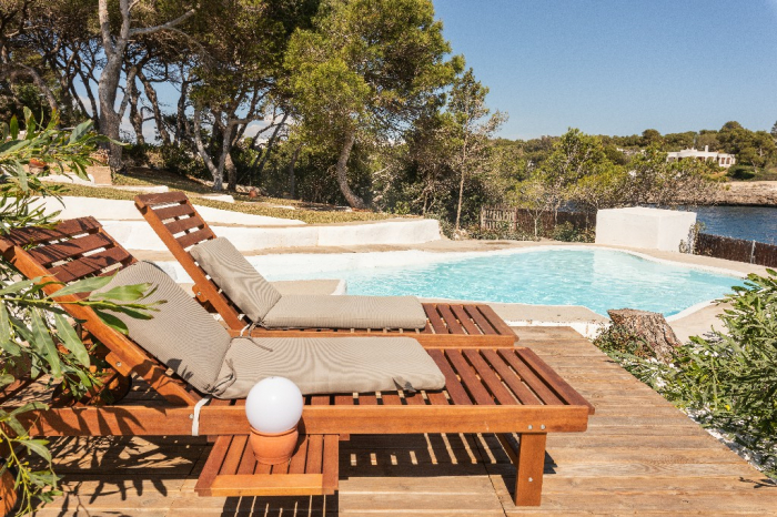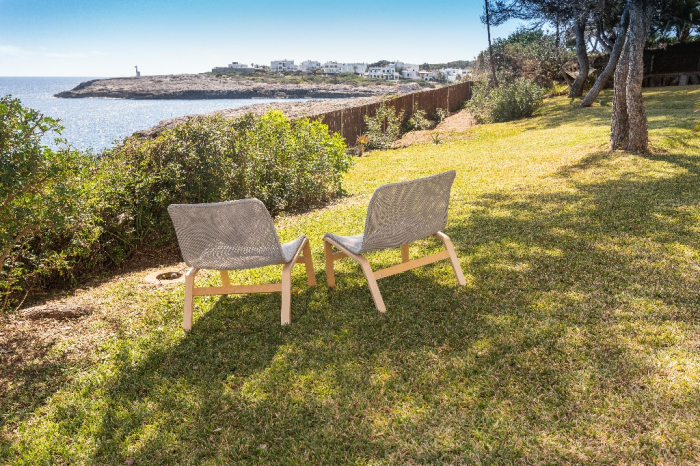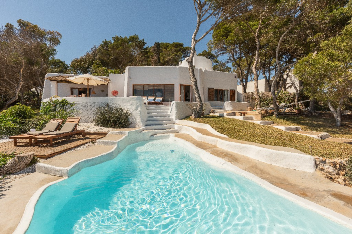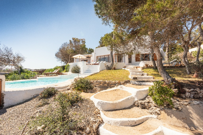 Lorenzo. This ibiza style design villa for holidays standing in a very privileged location on the headland between the coves of Cala Gran and Cala D'Or in a quiet residential area with gorgeous views on the open sea and the "Forti"