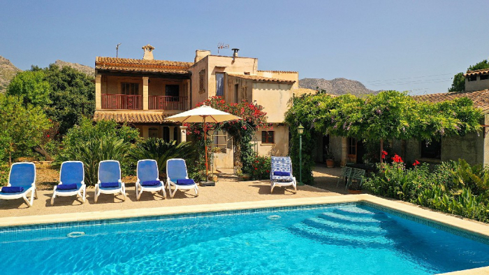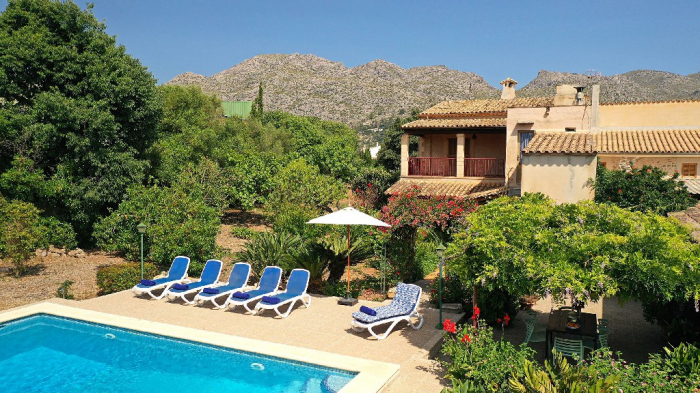 Traditional Mallorquin style country house, with 3 bedrooms and private pool to rent just 2 km from Pollensa, Mallorca.