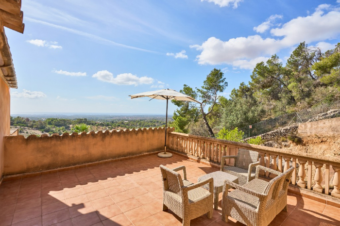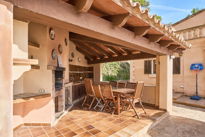 Cozy outdoor area with a porch next to the pool, a built-in barbecue and a table to enjoy al fresco meals with spectacular open views. There is also an area with a table and chairs to relax and enjoy the views of the beautiful Mallorcan countryside both day and night.