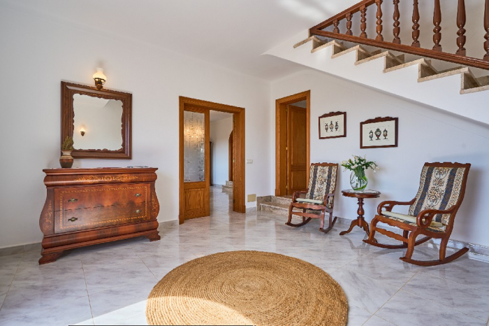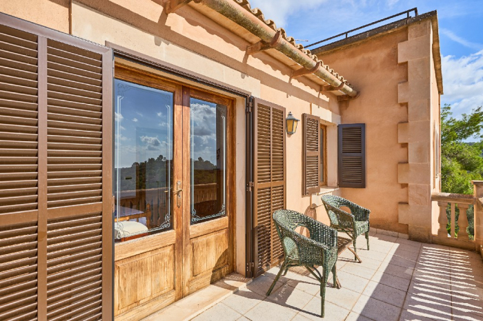 Puig de sa Figuera is a two-storey country house. From the patio beautiful two flights of stone steps lead to the house. On this floor there is the living room and the dining room which is very spacious. Both have access to a balcony/terrace with panoramic views of the surroundings with the coastline in the distance. The kitchen is next to the dining room. From the living room there are two steps that lead up to two twin bedrooms and to a bathroom. Next to the hall there is a shower-room.
