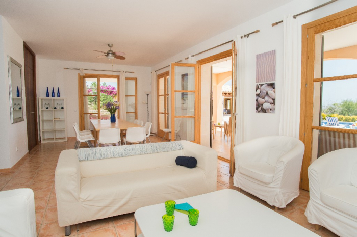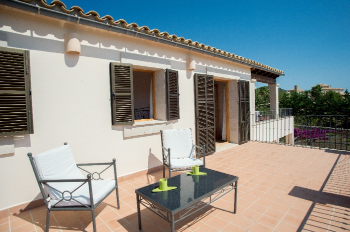 Romana is a great newly built villa nicely furnished offering a house full of natural light with plenty sunny and shady areas to relax and enjoy the calm and peaceful country life. The ground floor boasts an airy and bright living/dining area with large glazed doors opening onto the charming covered terrace with great open country and sea views. The modern and spacious kitchen with L-shape is fully equipped and has access to the side terrace. Two twin bedrooms that share a shower-room and a guest toilet complete the ground floor. The first floor boasts two lovely and bright bedrooms a spacious master bedroom with double bed, dressing area, spacious en-suite bathroom with a separate shower and a bath, direct access to two large terraces one partially covered with terrace furniture and supper panoramic country and pool views. The last one is a twin bedroom also with dressing room and en-suite bathroom with a separate bath and shower.