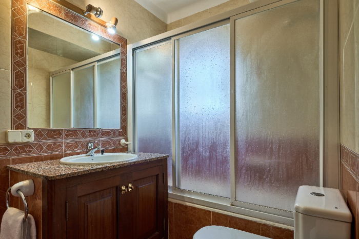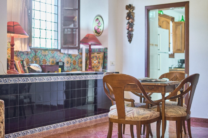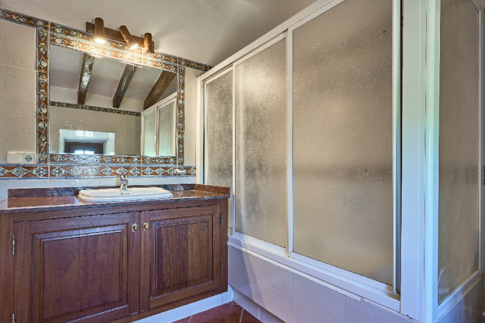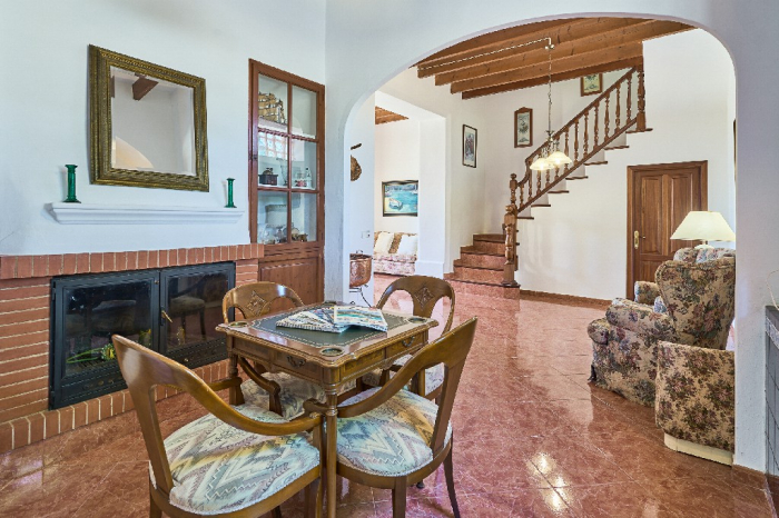 Tanca is a simple typical Majorcan house that has kept part of its original character with high ceilings with wooden beams. It is simple furnished with a mix of wooden furniture and antique dark-wood Majorcan furniture. From the main entrance you access into a spacious hall/lounge with antique furniture that connects to the bedrooms and kitchen. The open plan kitchen which is very spacious has a dining area with access onto the garden-terrace. On the ground floor there are also two double bedrooms with antique Majorcan furniture, both with en-suite bathrooms.