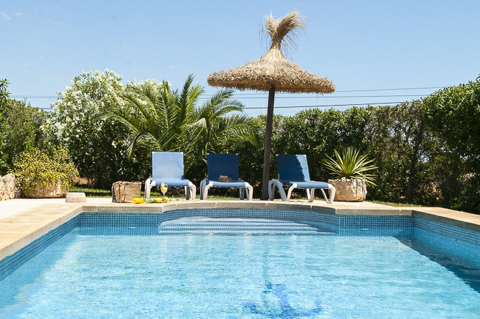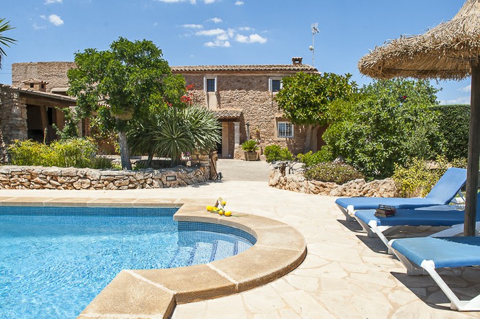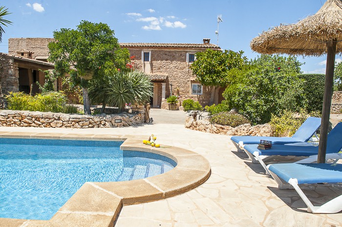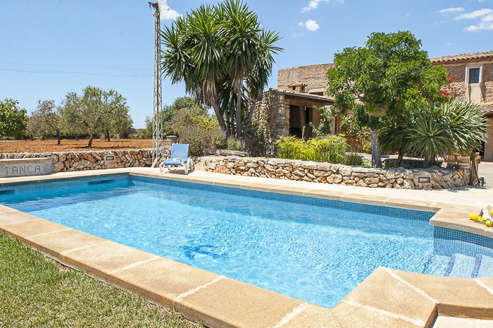 Tanca Nova for 8 persons is a traditional Mallorquin house, located between the small town of S'Horta and the tourist resort Cala D'Or with great sandy coves. The private pool is screened from the neighouring countryside by bushes and trees.