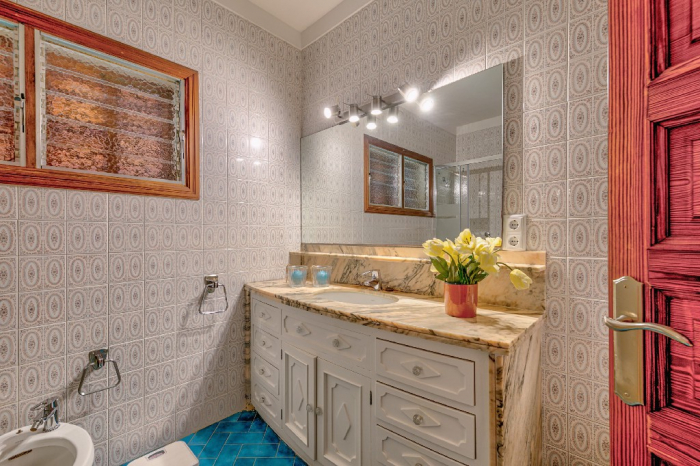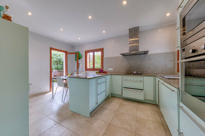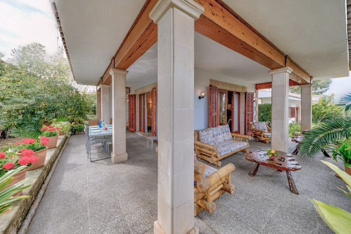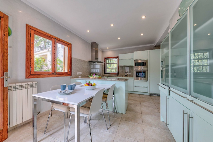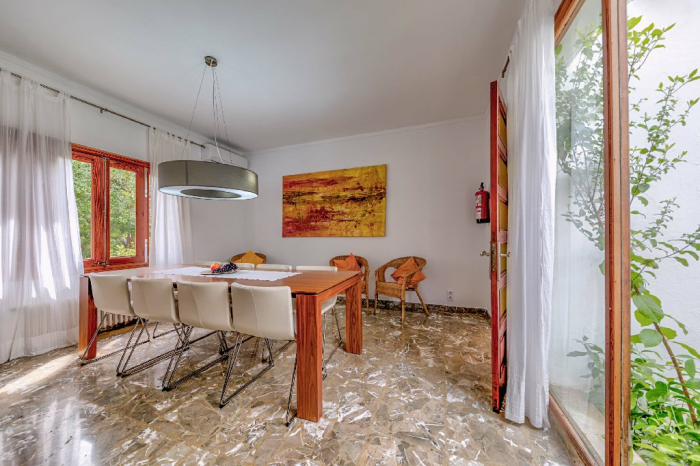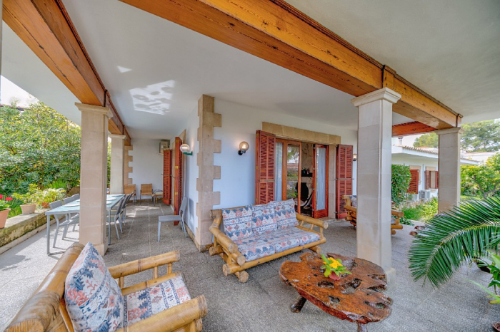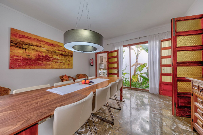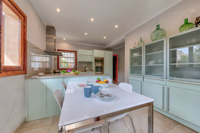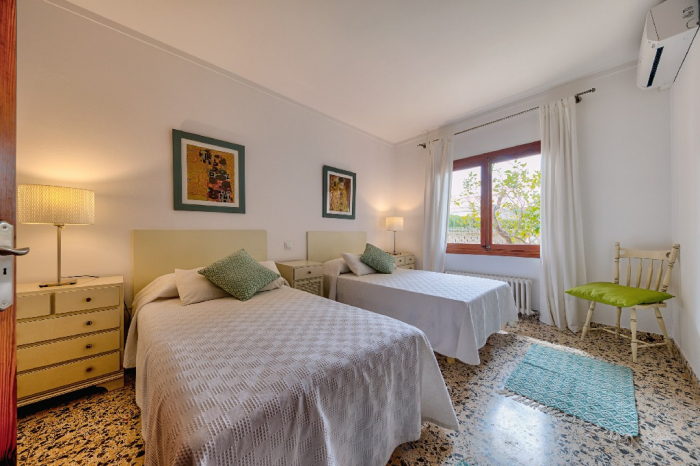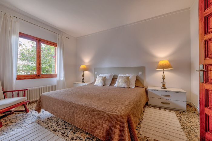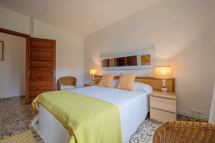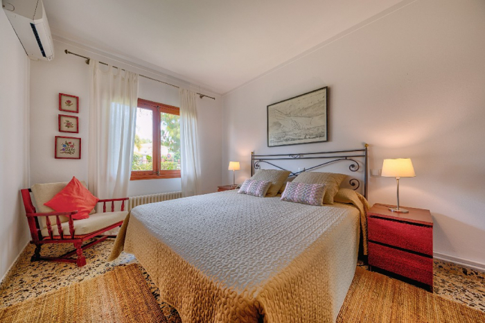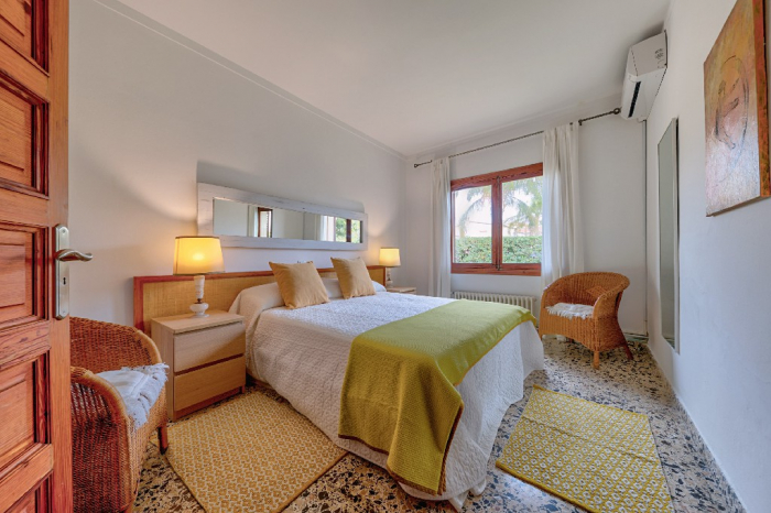 Villa Verd, a one floor villa which sleeps 8 and features 4 bedrooms and 3 bathrooms, all just steps from the beach, allowing you to enjoy a relaxing holiday without needing a car.